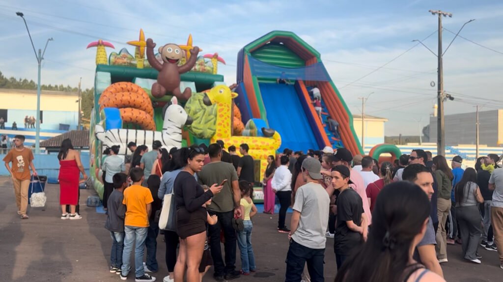 “Uma festa linda, tudo muito organizado e, o melhor de tudo, com atrações para as crianças. Isso mostra respeito com as famílias”, destacou dona Marta da Silva, moradora do bairro Quatro Pinheiros, em entrevista à GMC TV.