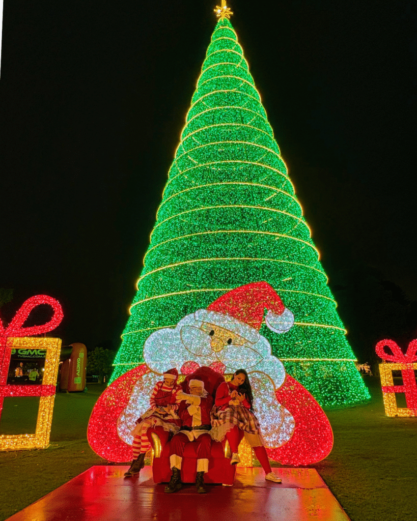 O símbolo máximo da festa é a imponente árvore de Natal de 35 metros de altura, considerada a maior da Região Metropolitana de Curitiba. Iluminada e decorada especialmente para esta edição do evento, ela se tornou parada obrigatória para fotos e vídeos. Aos pés da árvore, os visitantes ainda podem registrar o momento ao lado do Papai Noel, que recebe o público diariamente em seu espaço temático. Além da árvore gigante, o Parque do Papai Noel oferece uma experiência completa. O túnel iluminado sobre o lago cria um espetáculo visual à parte, encantando quem passa pela ponte e fazendo do local um dos cenários mais fotografados do evento. O passeio de pedalinho também está disponível, proporcionando uma vista privilegiada da decoração natalina refletida nas águas.